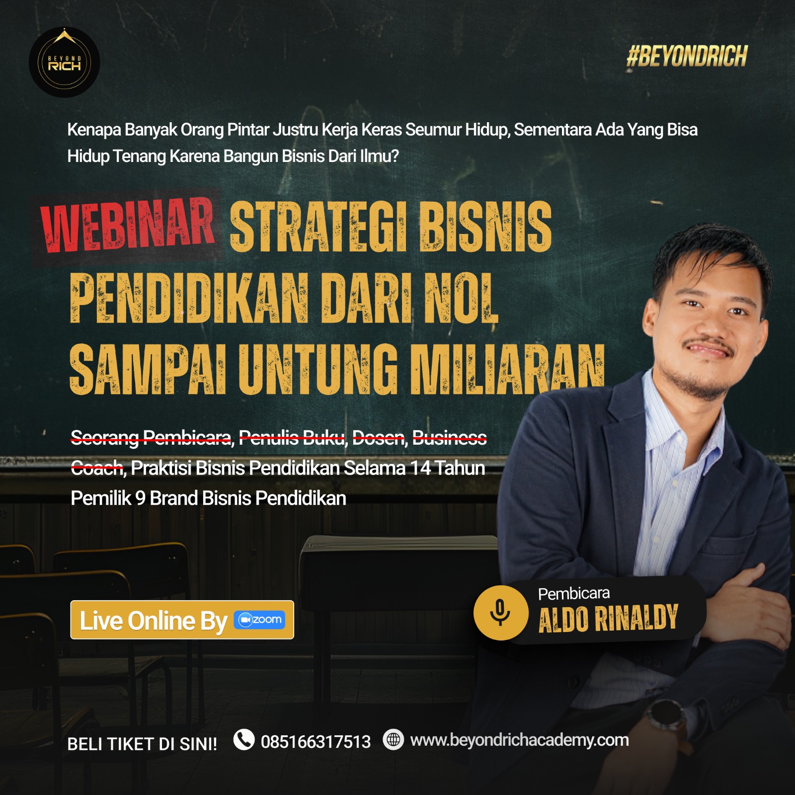 Dalam 1 webinar ini, Anda akan belajar langsung dari Aldo Rinaldy, praktisi bisnis edukasi yang: